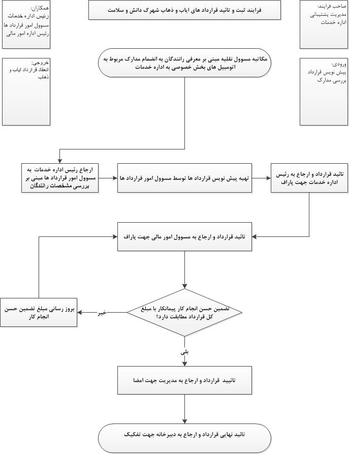 فرآیند ثبت و تایید قراردادهای ایاب و ذهاب شهرک دانش و سلامت
