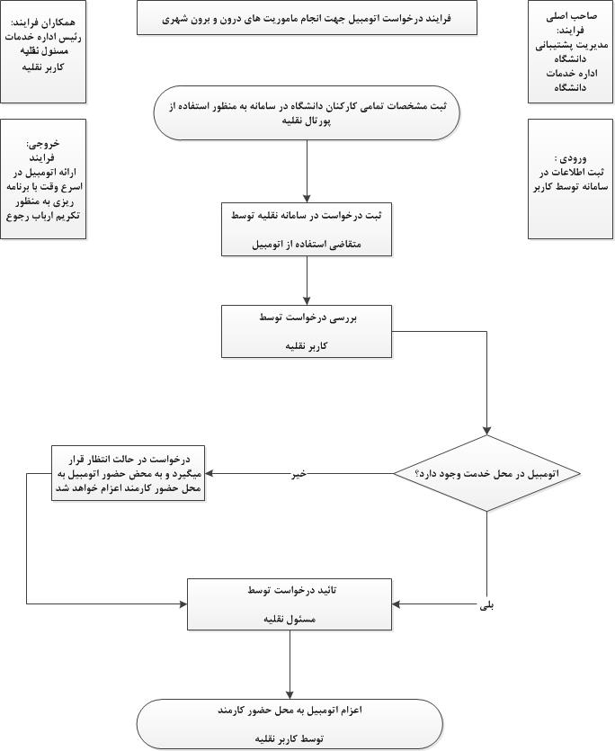 فرآیند درخواست اتومبیل جهت انجام ماموریت های درون و برون شهری