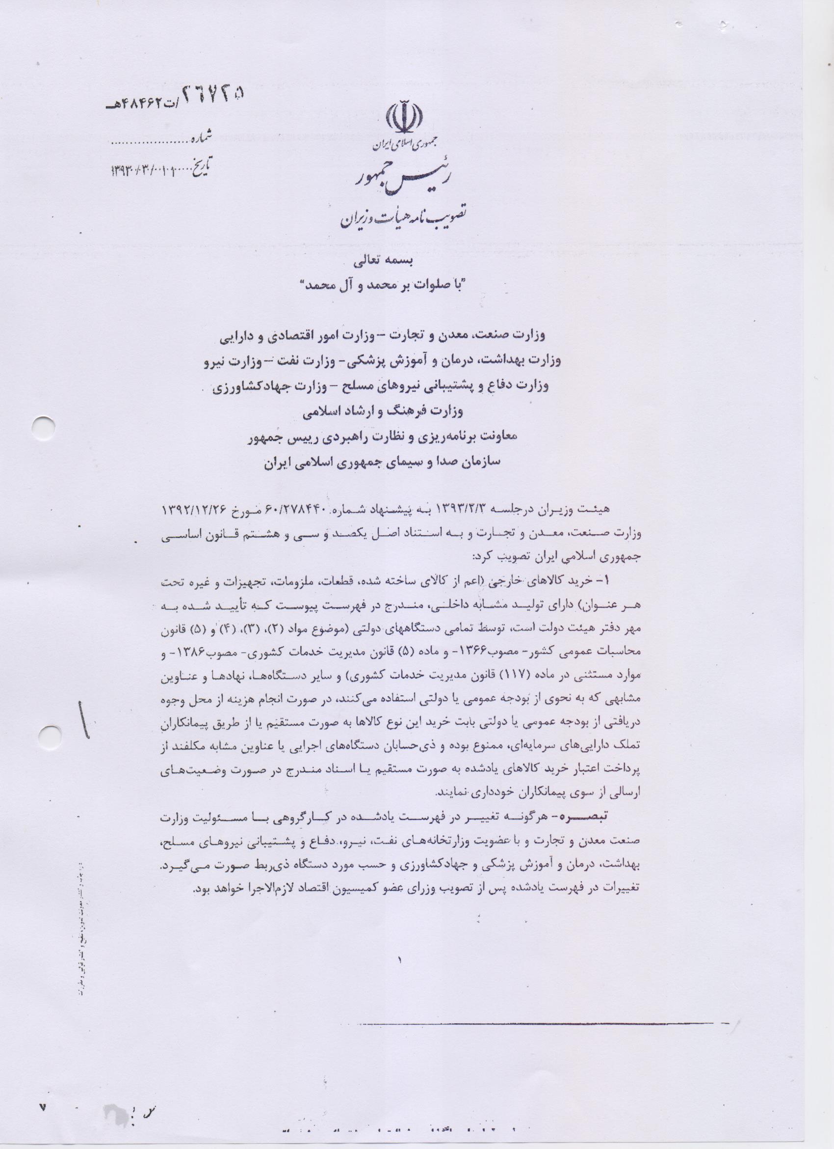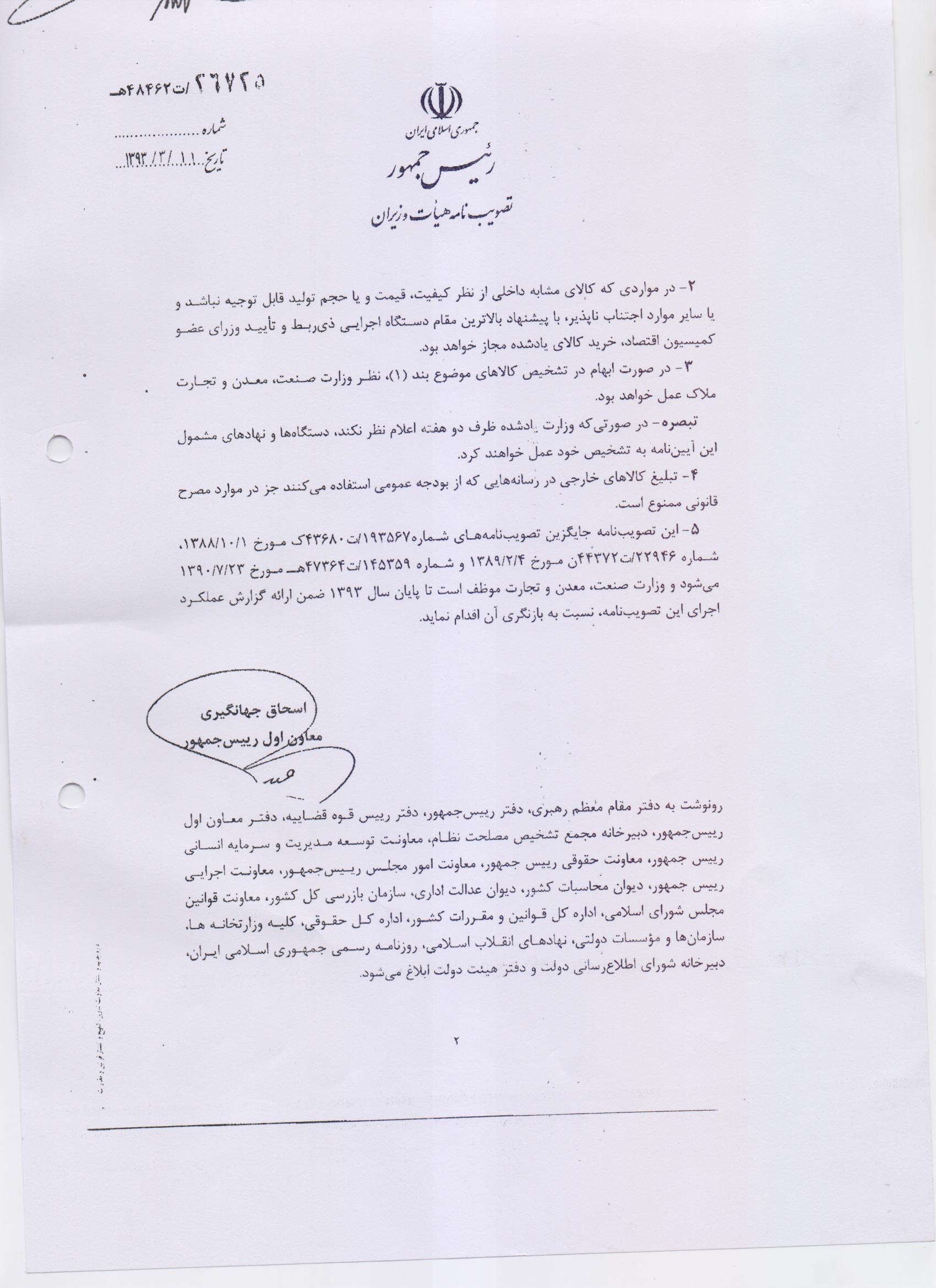 بخشنامه ممنوعیت خرید کالاهای خارجی سال93