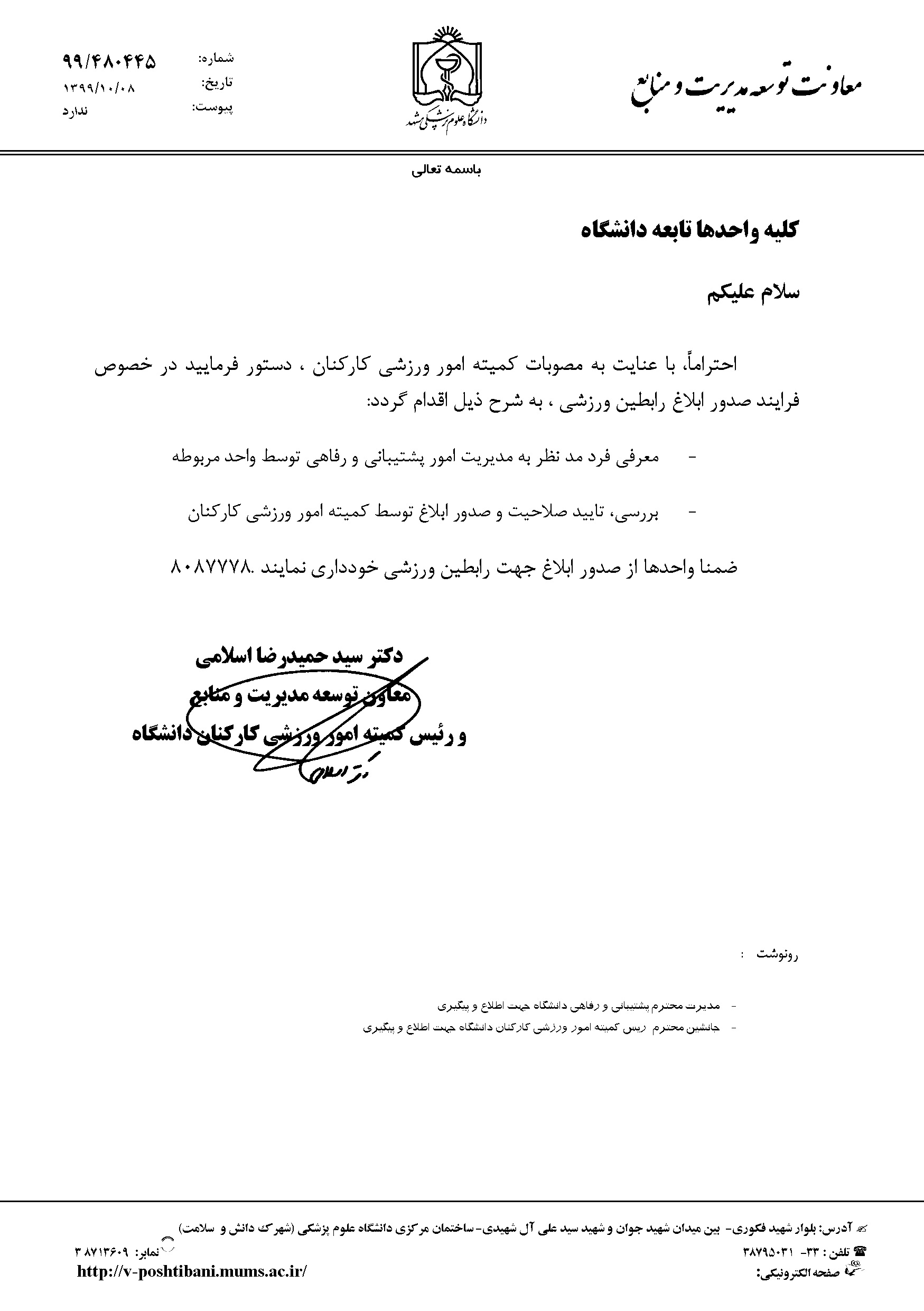 بخشنامه ارزشیابی فعالیتهای مستمر ورزش کارکنان