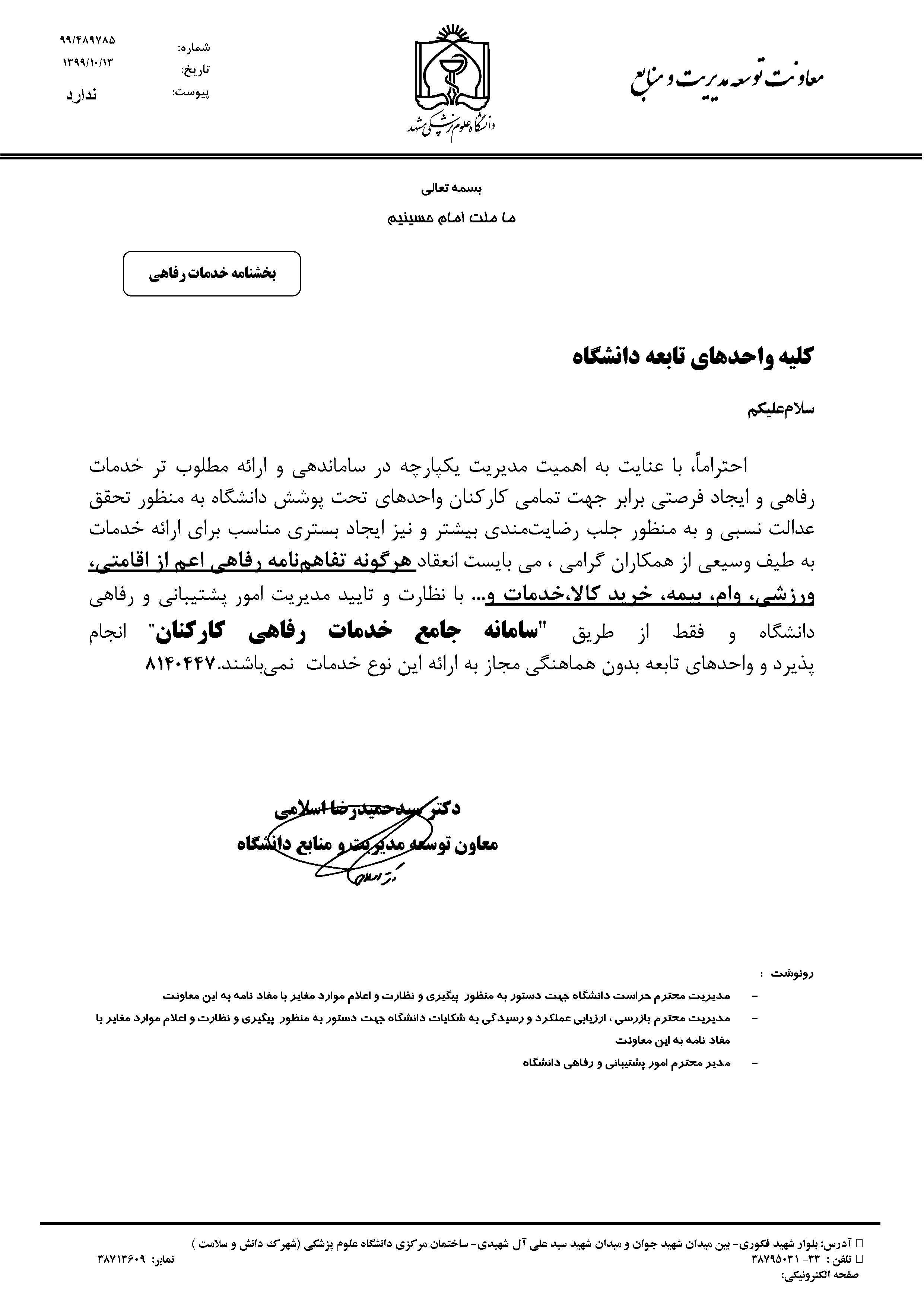 انعقاد تفاهم نامه های رفاهی از طریق سامانه جامع خدمات رفاهی کارکنان