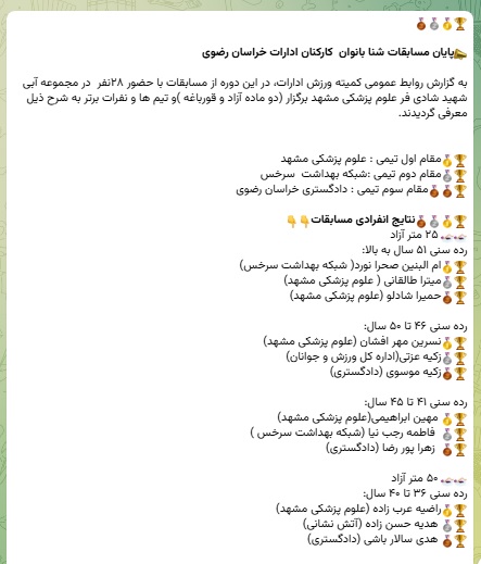 08 ارديبهشت 1404 بازدید: 29 پایان مسابقات شنا بانوان کارکنان ادارات خراسان رضوی انعکاس رسانه ای عکس اکرانهای شهری خبر وبدا شبکه های اجتماعی انعکاس رسانه ای عکس اکرانهای شهری خبر وبدا شبکه های اجتماعی انعکاس رسانه ای عکس اکرانهای شهری خبر وبدا شبکه های اجتماعی