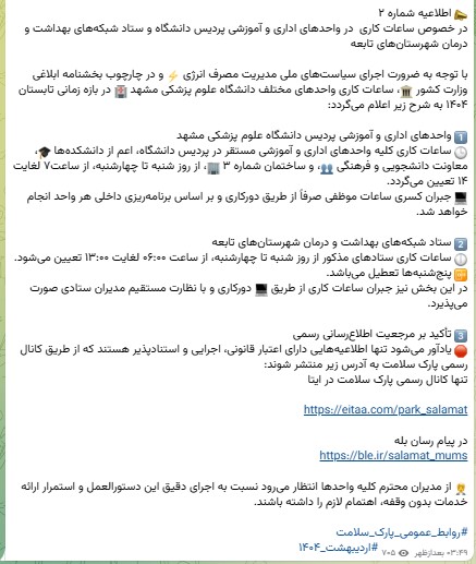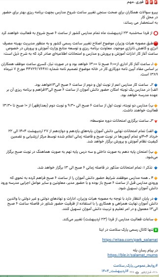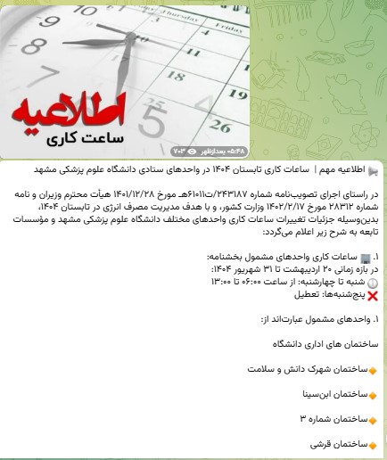 28 ارديبهشت 1404 بازدید: 14 تغییر ساعت کاری انعکاس رسانه ای عکس اکرانهای شهری خبر وبدا شبکه های اجتماعی انعکاس رسانه ای عکس اکرانهای شهری خبر وبدا شبکه های اجتماعی انعکاس رسانه ای عکس اکرانهای شهری خبر وبدا شبکه های اجتماعی