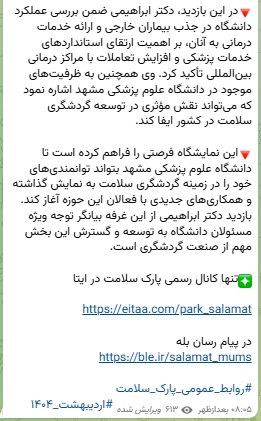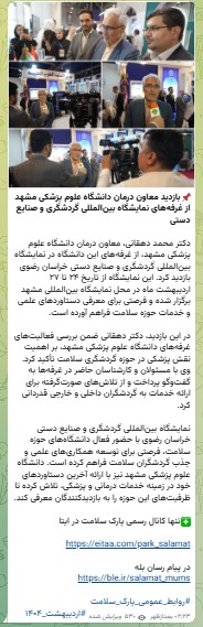 10 خرداد 1404 بازدید: 25 برگزاری نمایشگاه بینالمللی گردشگری و صنایع دستی خراسان رضوی از تاریخ ۲۴ تا ۲۷ اردیبهشت ماه در محل نمایشگاه بینالمللی مشهد انعکاس رسانه ای عکس اکرانهای شهری خبر وبدا شبکه های اجتماعی انعکاس رسانه ای عکس اکرانهای شهری خبر وبدا شبکه های اجتماعی انعکاس رسانه ای عکس اکرانهای شهری خبر وبدا شبکه های اجتماعی