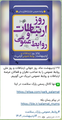 10 خرداد 1404 بازدید: 30 گرامیداشت روز جهانی ارتباطات و روز ملی روابط عمومی انعکاس رسانه ای عکس اکرانهای شهری خبر وبدا شبکه های اجتماعی انعکاس رسانه ای عکس اکرانهای شهری خبر وبدا شبکه های اجتماعی انعکاس رسانه ای عکس اکرانهای شهری خبر وبدا شبکه های اجتماعی