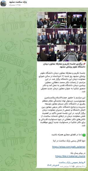 09 تیر 1404 بازدید: 27 انتصاب دکتر منصور شکیبا به عنوان معاون درمان دانشگاه انعکاس رسانه ای عکس اکرانهای شهری خبر وبدا شبکه های اجتماعی انعکاس رسانه ای عکس اکرانهای شهری خبر وبدا شبکه های اجتماعی انعکاس رسانه ای عکس اکرانهای شهری خبر وبدا شبکه های اجتماعی