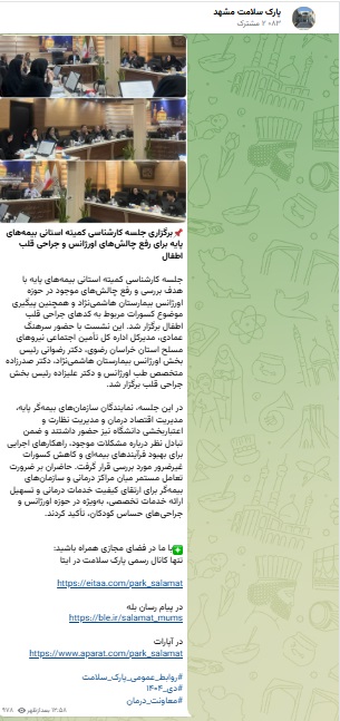 برگزاری جلسه کارشناسی کمیته استانی بیمههای پایه برای رفع چالشهای اورژانس و جراحی قلب اطفال
