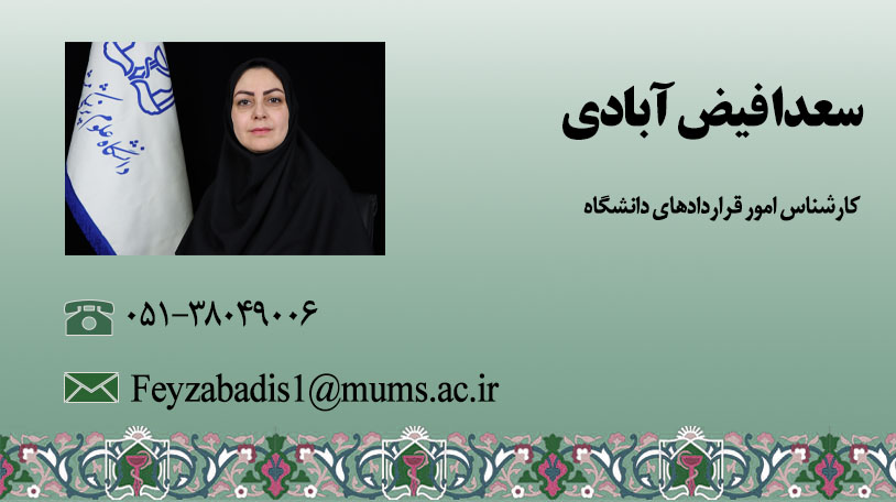 کارشناس اداره امور قراردادهای دانشگاه (سعدا فیض آبادی)