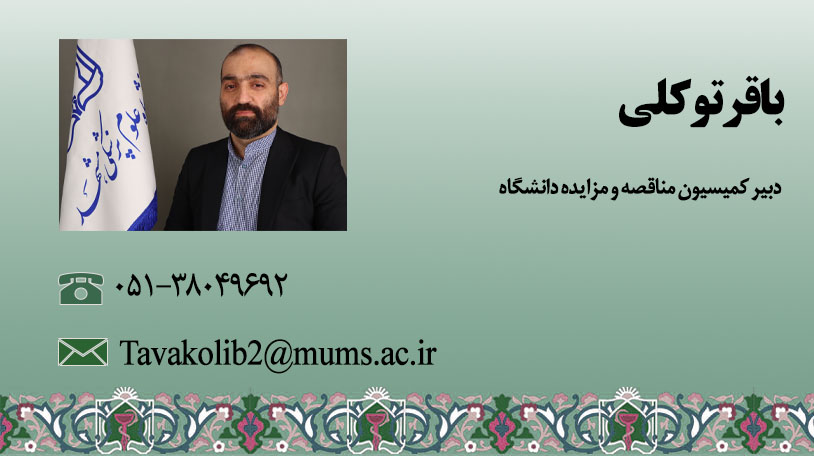 دبیر کمیسیون مناقصه و مزایده دانشگاه (باقر توکلی)