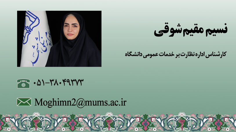 کارشناس اداره نظارت بر خدمات عمومی (نسیم مقیم شوقی)