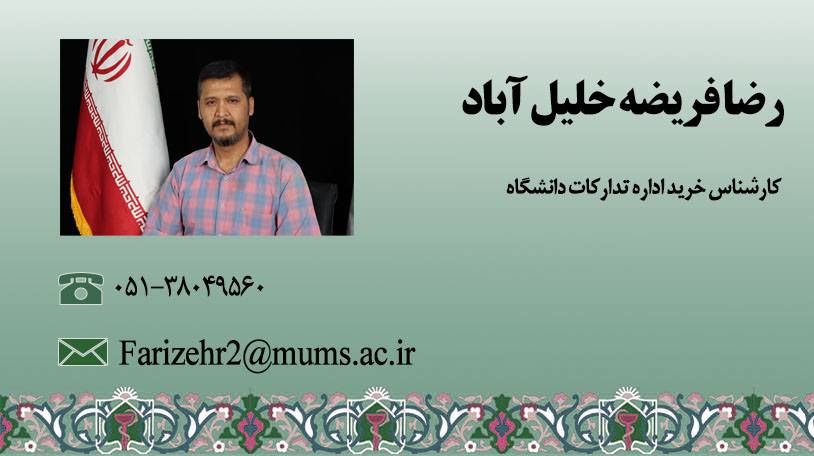 کارشناس خرید اداره تدارکات دانشگاه (رضا فریضه خلیل آباد)