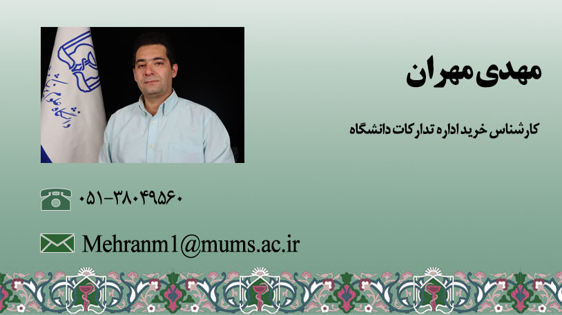 کارشناس خرید اداره تدارکات دانشگاه (مهدی مهران)