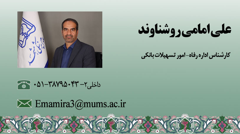 کارشناس اداره رفاه - امور تسهیلات بانکی (علی امامی روشناوند)