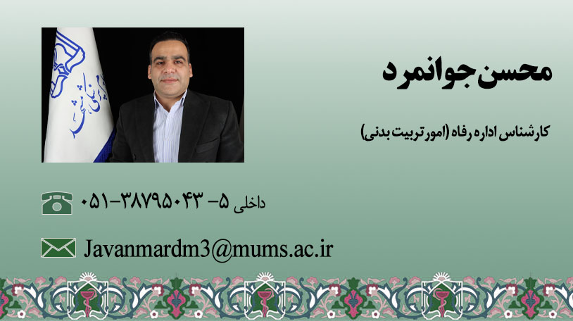 کارشناس اداره رفاه - امور تربیت بدنی (محسن جوانمرد )