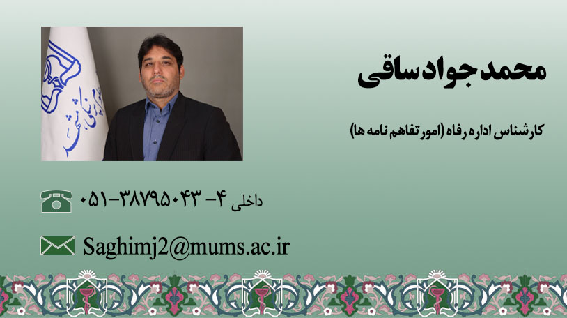 کارشناس اداره رفاه -امور تفاهم نامه ها (محمدجواد ساقی)