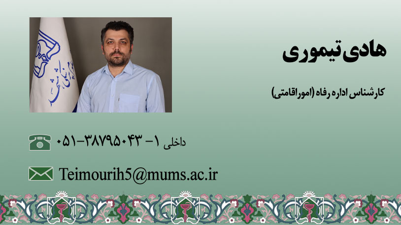 کارشناس اداره رفاه - امور اقامتی (هادی تیموری)