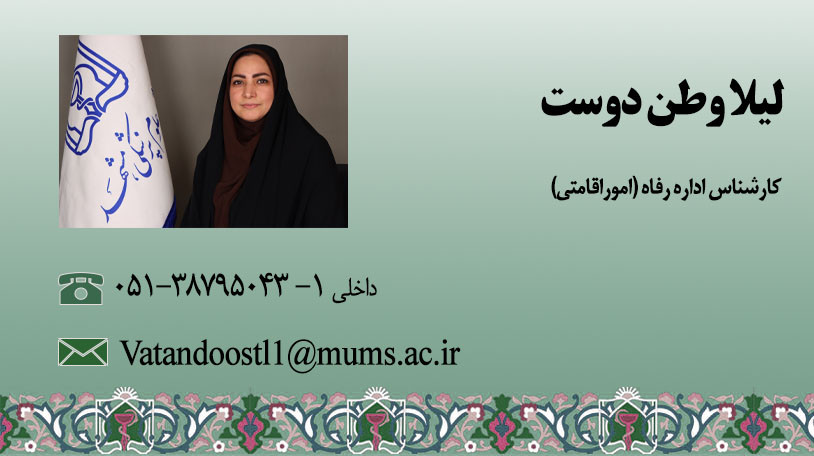 کارشناس اداره رفاه -امور اقامتی (لیلا وطن دوست)
