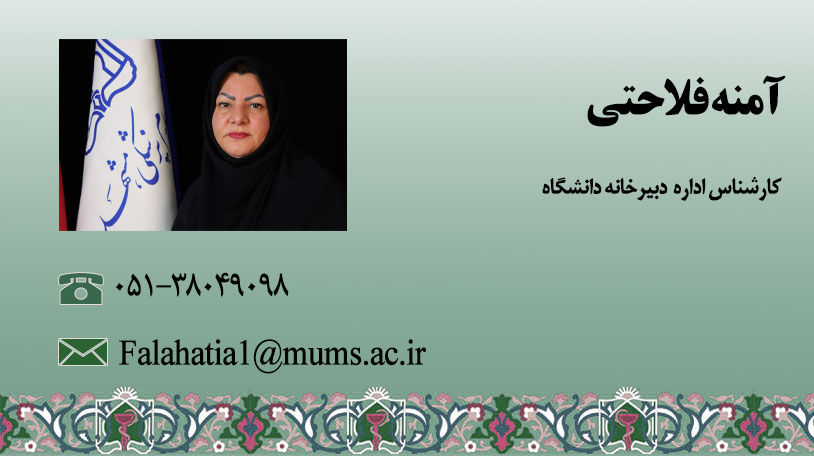 کارشناس اداره دبیرخانه دانشگاه (منصوره فتاح)