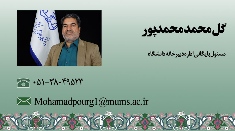مسئول بایگانی اداره دبیرخانه دانشگاه (گل محمد محمدپور)