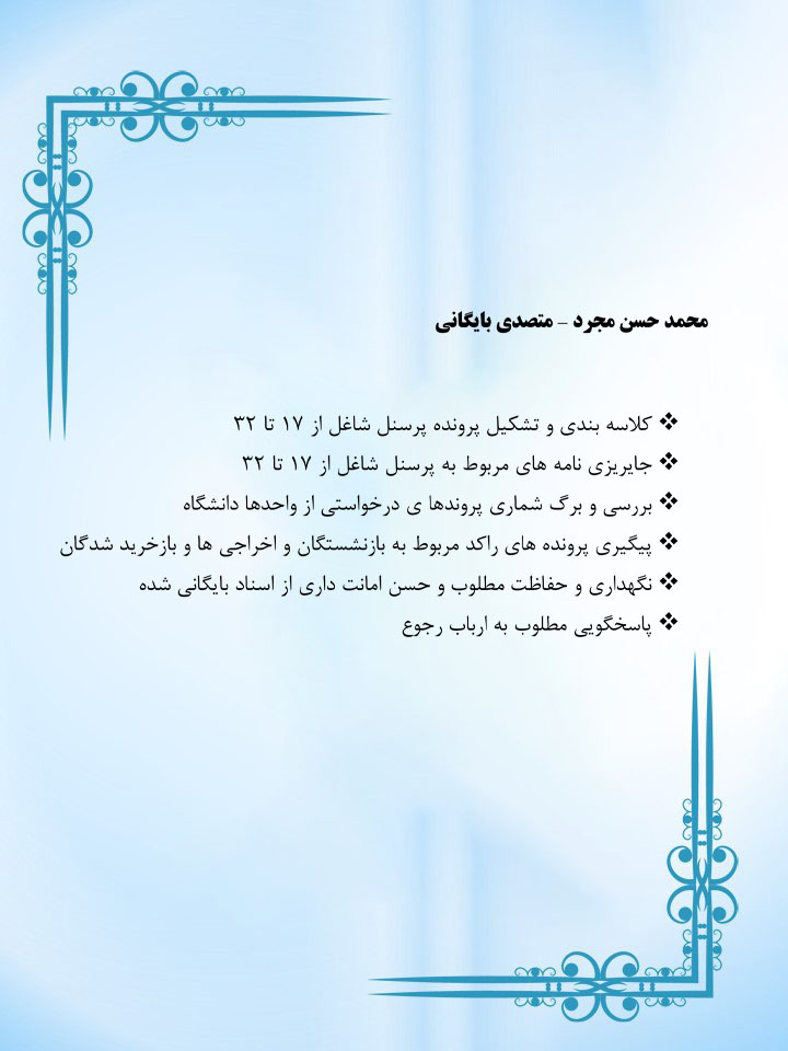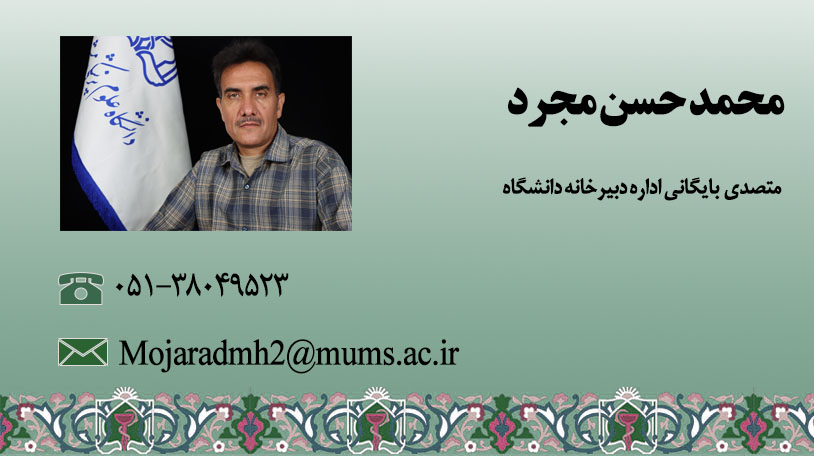 متصدی بایگانی اداره دبیرخانه دانشگاه (محمد حسن مجرد)