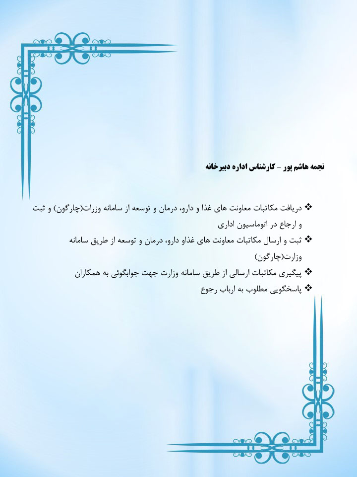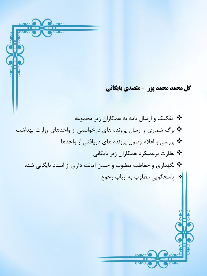 معرفی پرسنل بایگانی اداره دبیرخانه دانشگاه