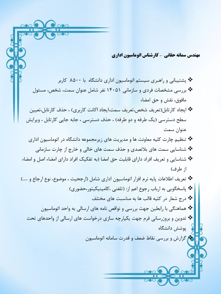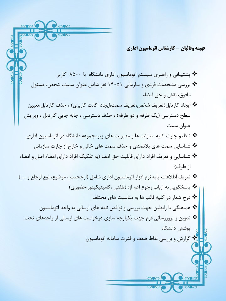 معرفی کارشناسان اداره دبیرخانه دانشگاه
