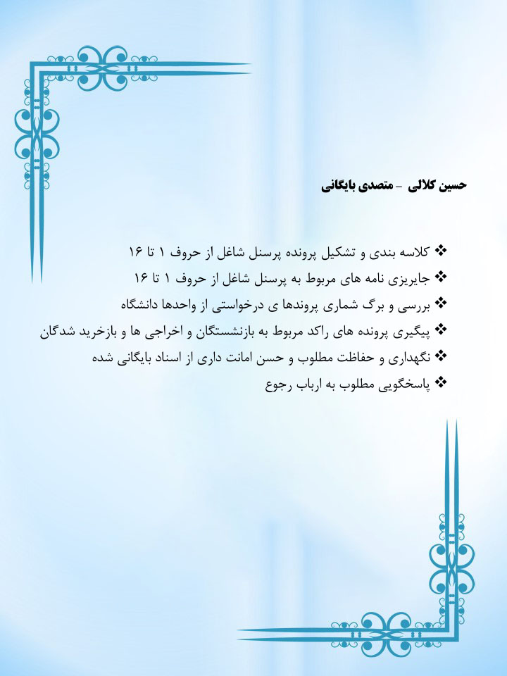 متصدی بایگانی اداره دبیرخانه دانشگاه (سید حسین کلالی)