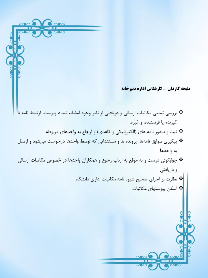 کارشناس اداره دبیرخانه دانشگاه (ملیحه کاردان مقدم)