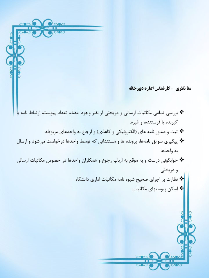 کارشناس اداره دبیرخانه دانشگاه (منا نظری)