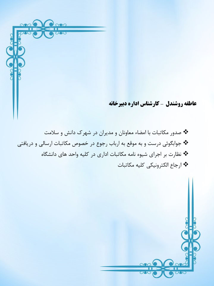 کارشناس اداره دبیرخانه دانشگاه (عاطفه روشندل)