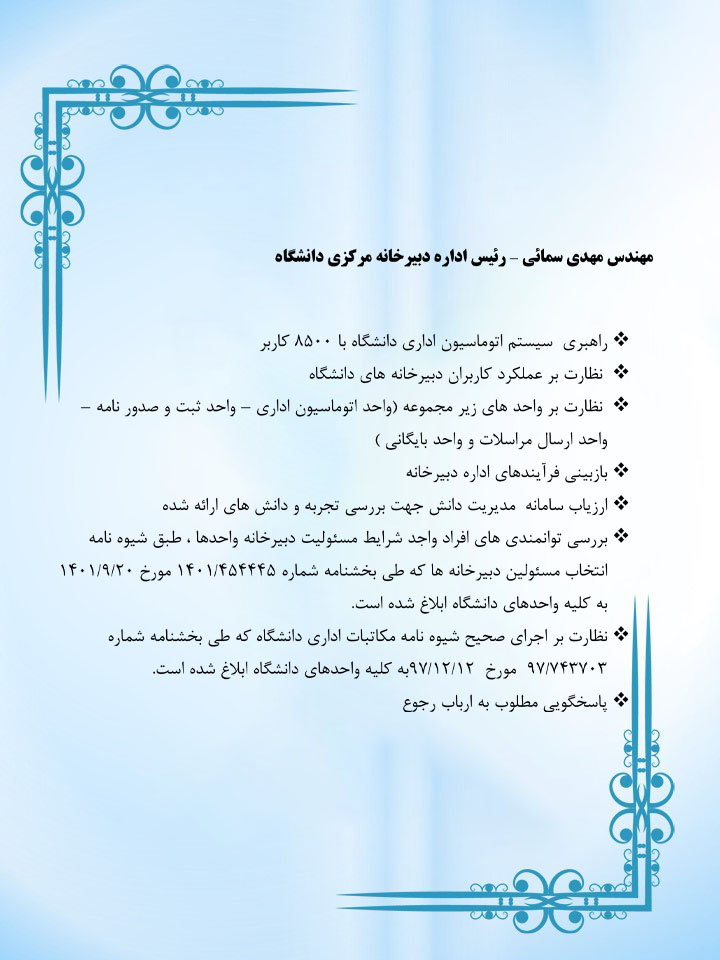 متصدی ارسال و مراسلات اداره دبیرخانه دانشگاه(یحیی موسوی)