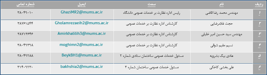 مهندس سید حسین امیر خلیلی کارشناس اداره نظارت بر خدمات عمومی تحصیلات:کارشناس مهندسی کشاورزی این آدرس ایمیل توسط spambots حفاظت می شود. برای دیدن شما نیاز به جاوا اسکریپت دارید |